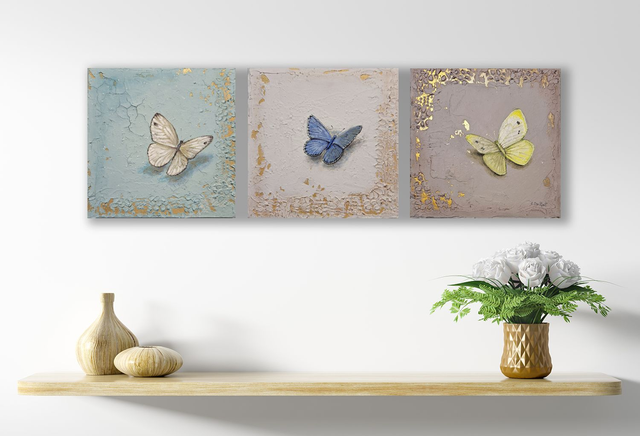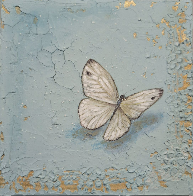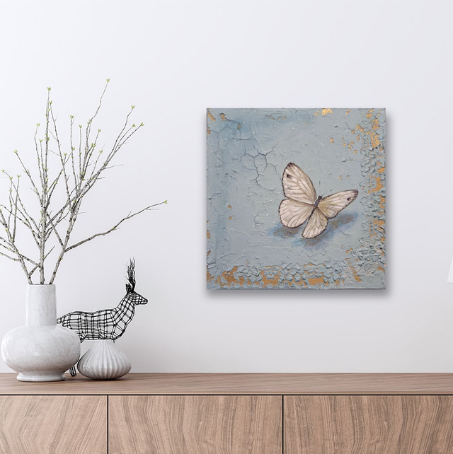 Il dipinto è un pezzo unico e fa parte di una serie di quadretti con tema farfalle e insetti che possono essere abbinati a piacere.