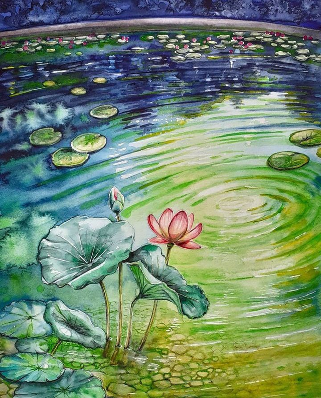 Acquerello dipinto a mano su carta Accademia-Fabriano grana naturale grammatura 240g/m².
