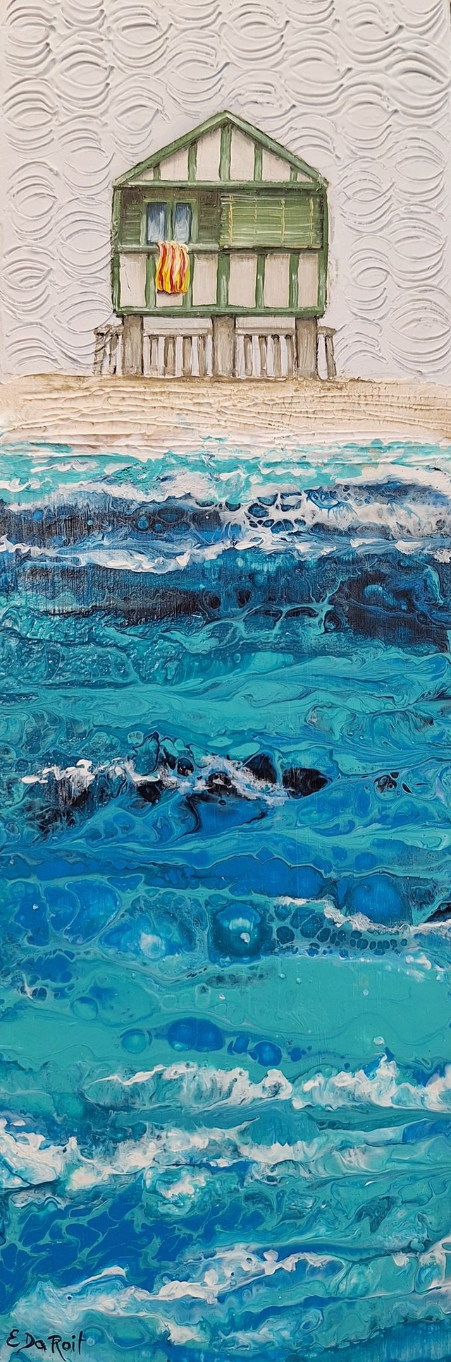 Quadretto dipinto a mano con pittura ad olio ed acrilico fluido su un fondo materico in rilievo in gesso.