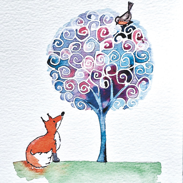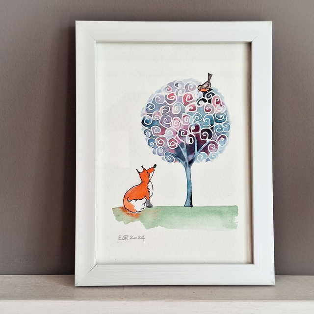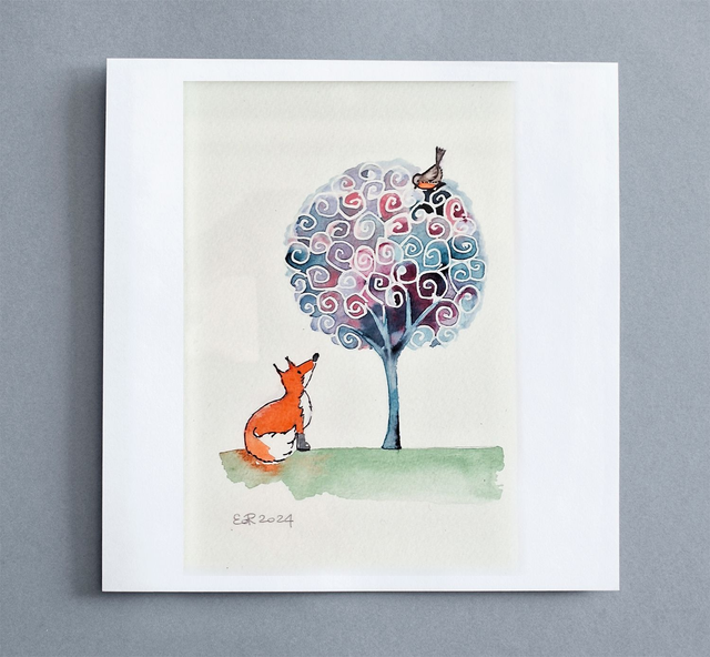 Acquerello "Volpe e pettirosso" - 1