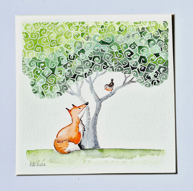 Acquerello "Volpe e Pettirosso" - 2